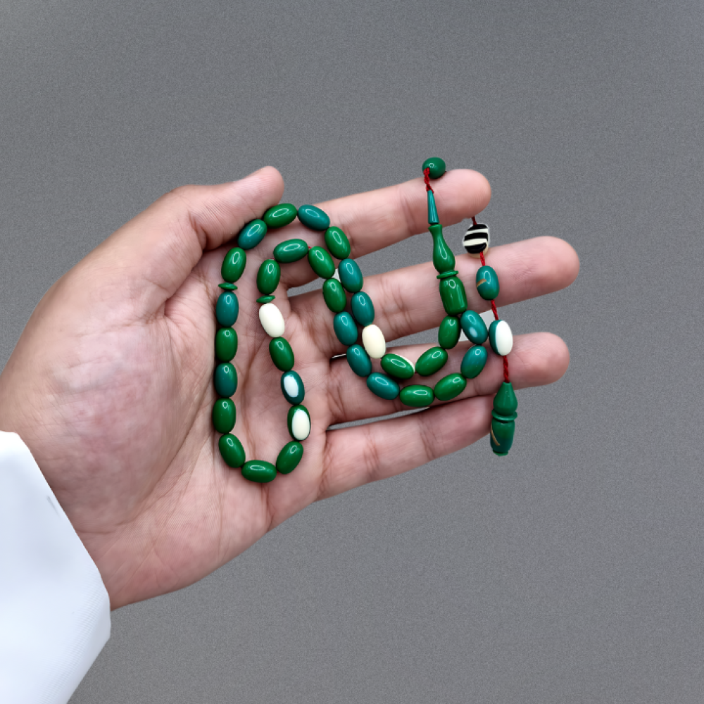 سبحة بلياردو حجمها صغير وملمسها ناعم وتتميز انها مخروطة من كور البلياردو والوانها مختلفة ومتداخلة عدد الخرز: 33حجم الخرز: 10وزن السبحة 22غ
